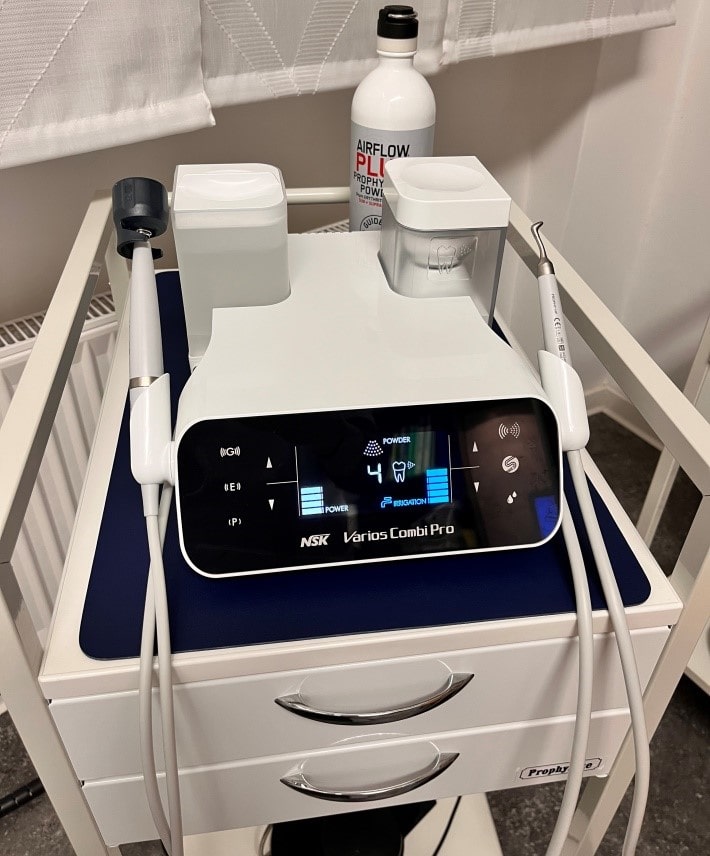 Ein neues Gerät, das NSK Vario Combi Pro hat in unserer Mitte Platz gefunden. Es ist ein weiteres Airflow/Zahnsteingerät, neben unserem vorhandenen EMS. Es ist genauso schonend, wie das EMS zu Ihren Zähnen und Zahnfleisch. Das tolle, es wird mit dem gleichen Airflowpulver betrieben.